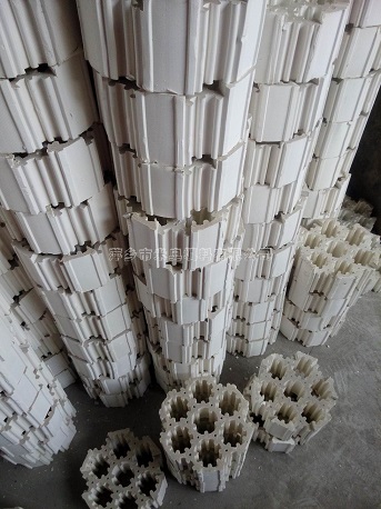 輕瓷填料產(chǎn)品的堆積重量為280~350kg/m3,遠小于一般普通規(guī)整填料的堆積密度。產(chǎn)品的堆積空隙率≥72%,顯氣孔率≥15%,總空隙率高達85%以上。從面具有填料塔重量輕、載荷小、操作阻力小、壓降低的優(yōu)點。
